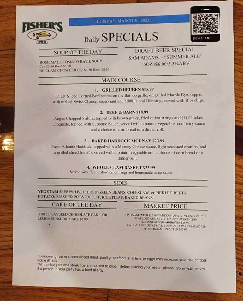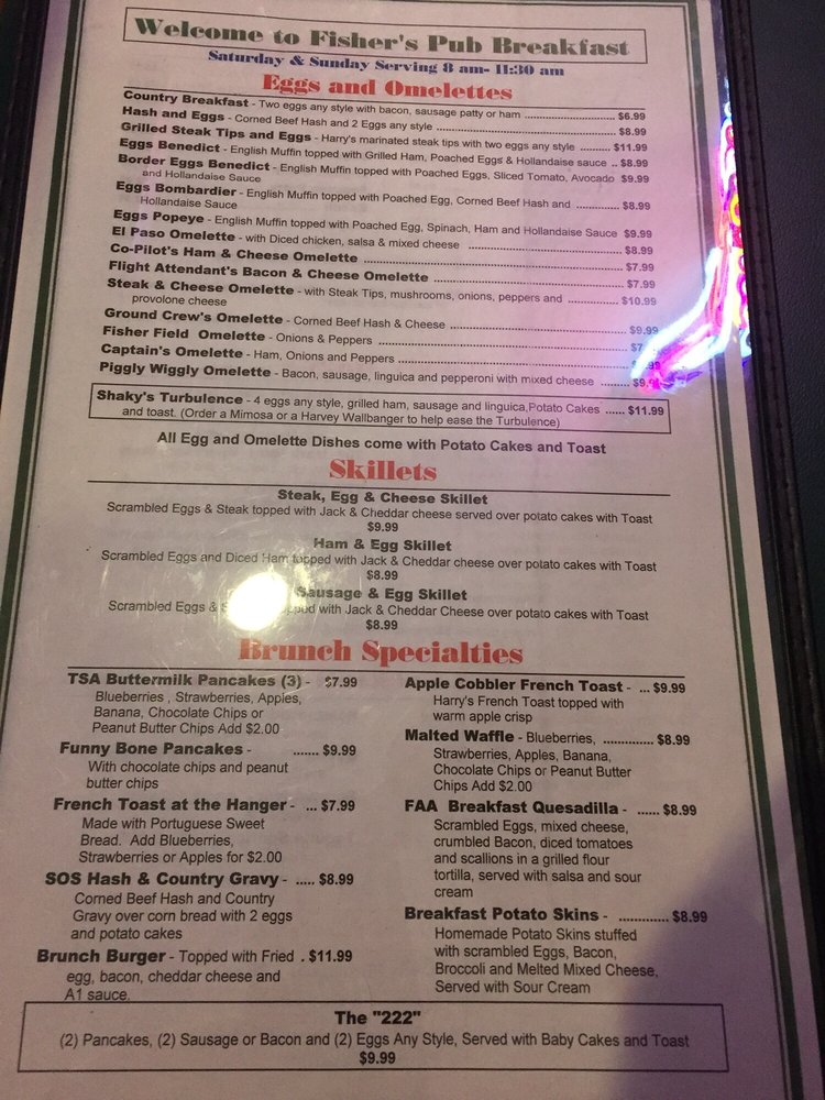 Introducing the Menu of Fisher's Pub